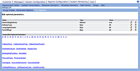 Unassigning a TLV from an SMSC: administrators will be able to unassign a TLV from on SMSC. The TLV will not be used the next time a message is submitted to the SMSC.