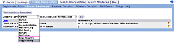 There are new SMS Sending and SMS Receiving sections added to the System Parameters page, which provide access to the system parameters specific to SMPP.
