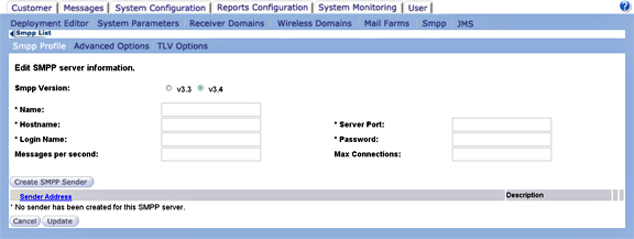 This section of the UI identifies the domains users can report on in the Campaign Reports by Domains. All SMSCs will be available in the Domain/SMSC reports, and therefore, adding the SMSCs to this section is not required. With this, this section should not be affected by this feature. Please refer to the Campaign Reports section of this document for details on how the SMSC activity will be reported upon.