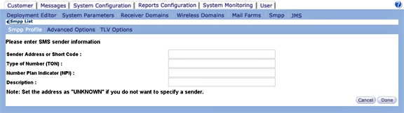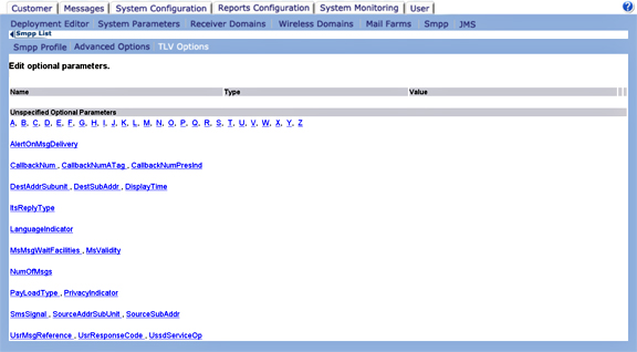Assigning TLVs: administrators will be able to choose the TLV parameters that apply to each server. To assign a TLV to an SMSC, administrators will need to click on the TLV name and assign the corresponding value.