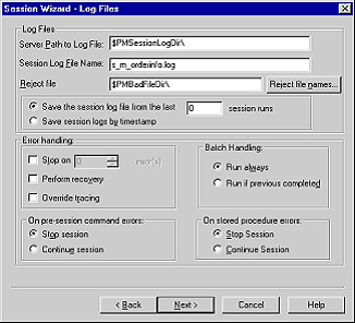 In the Session Wizard’s Log Files window you specify options related to log files and