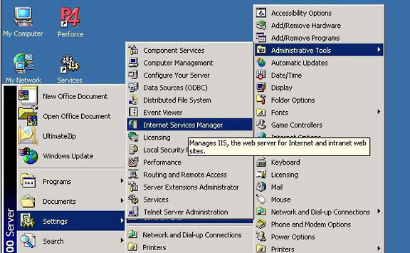 - Click Start > Settings > Control Panel > Administrative Tools >