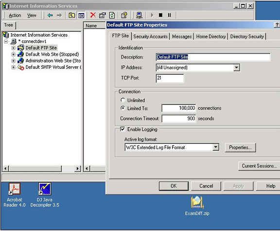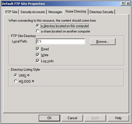 - Right-click Default FTP site to display the Default FTP Site Properties