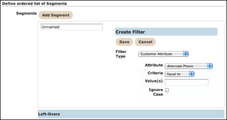 The screen is divided into three sections, Conversation, Filtering and Segmentation and