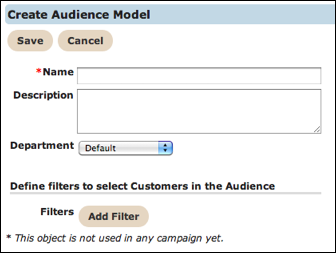 - At the end of the Audience Model field, click the Create button. The