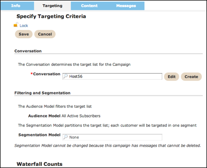 The Targeting tab is where you define the conversation, audience model and
