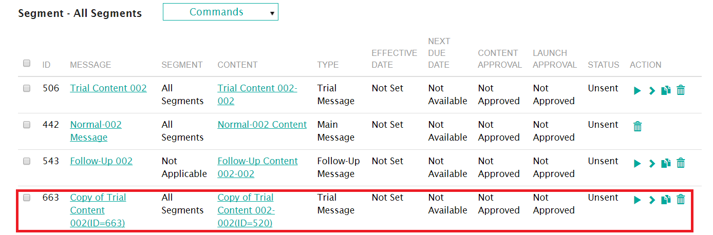 Cloning a message allows you to create a copy of an existing message and message type associated