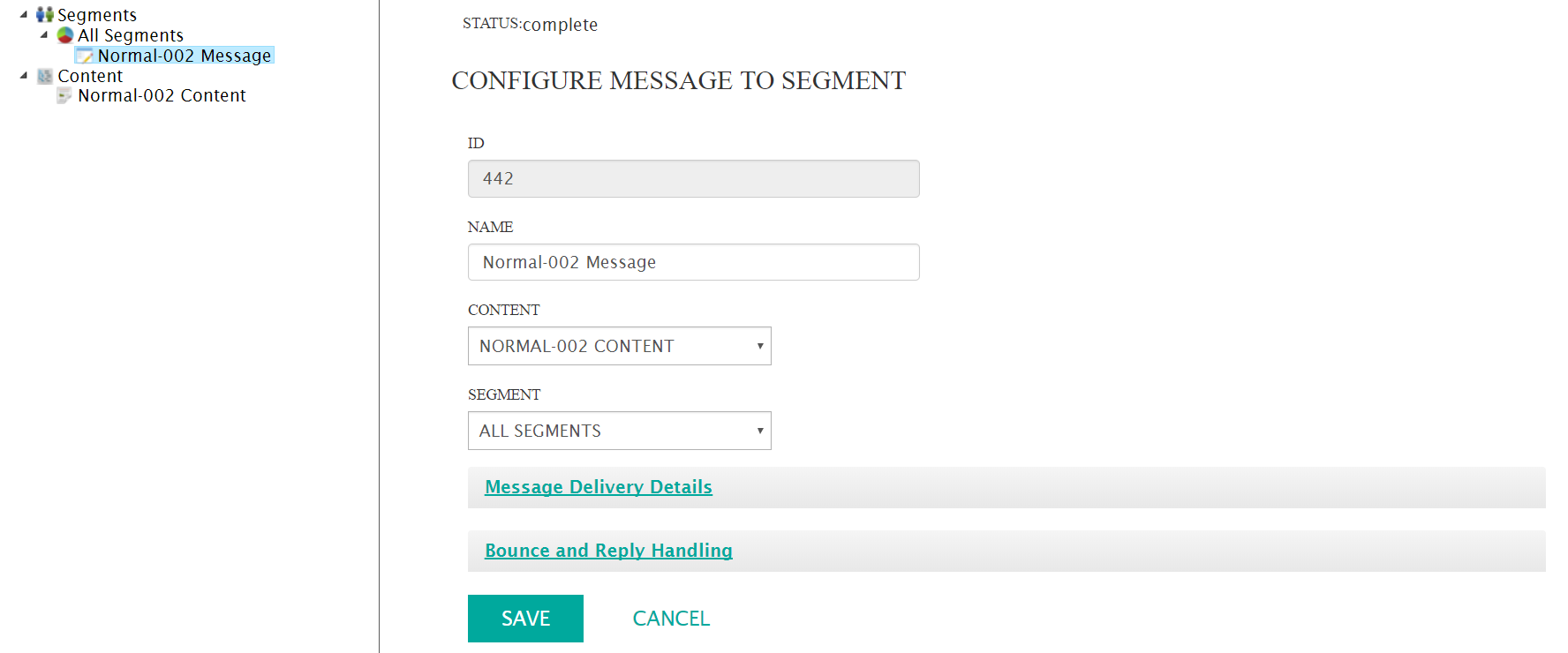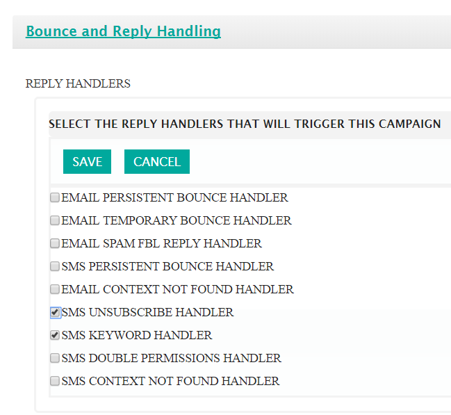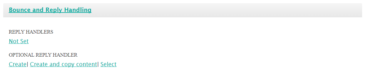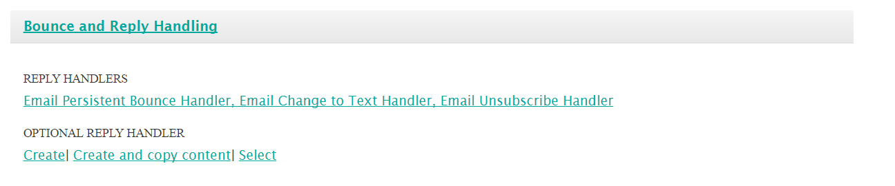 - Click the Bounce and Reply Handling section link. The Bounce and Reply