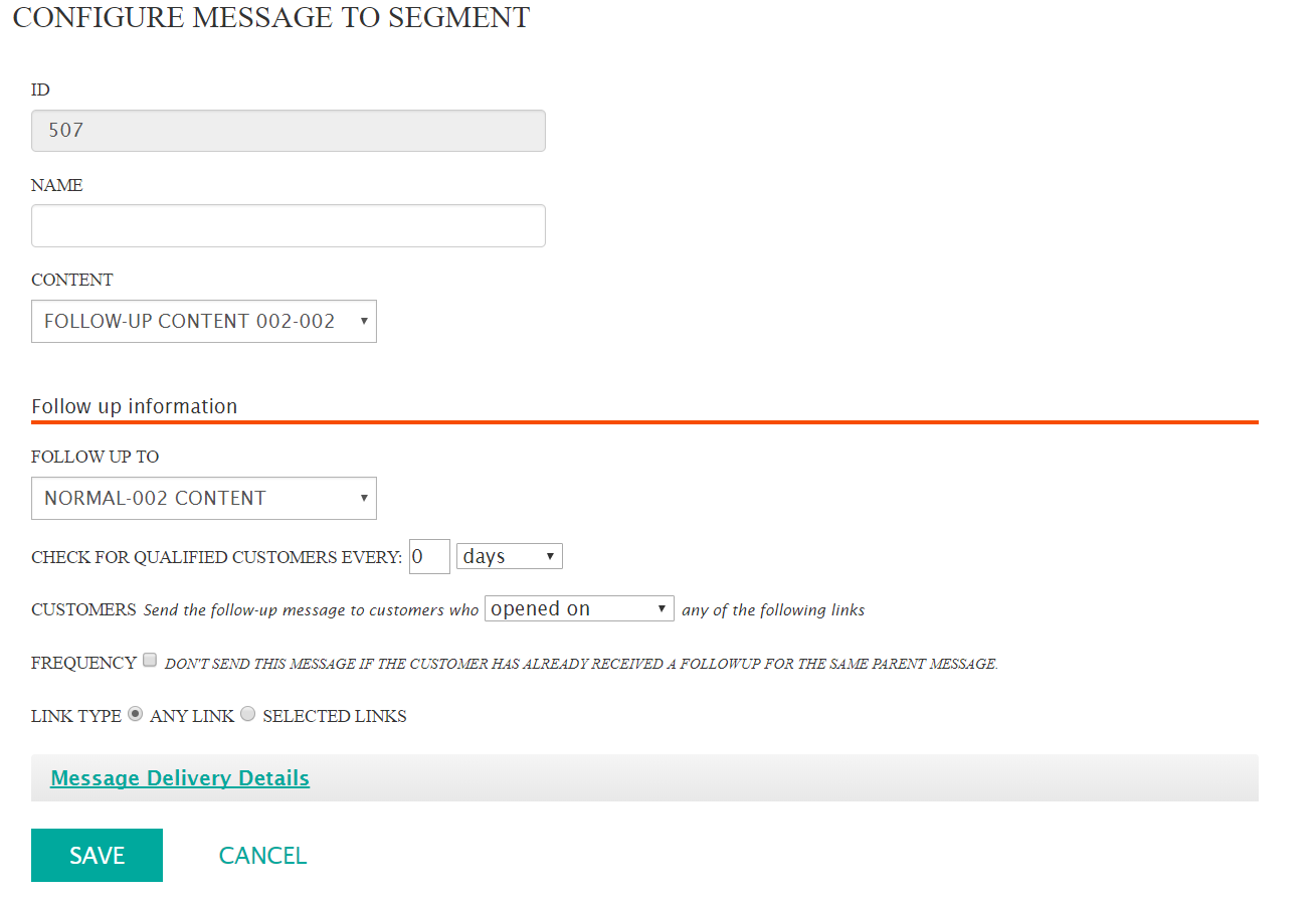 clicking on a link in the email) the follow-up message will be sent. You are able to